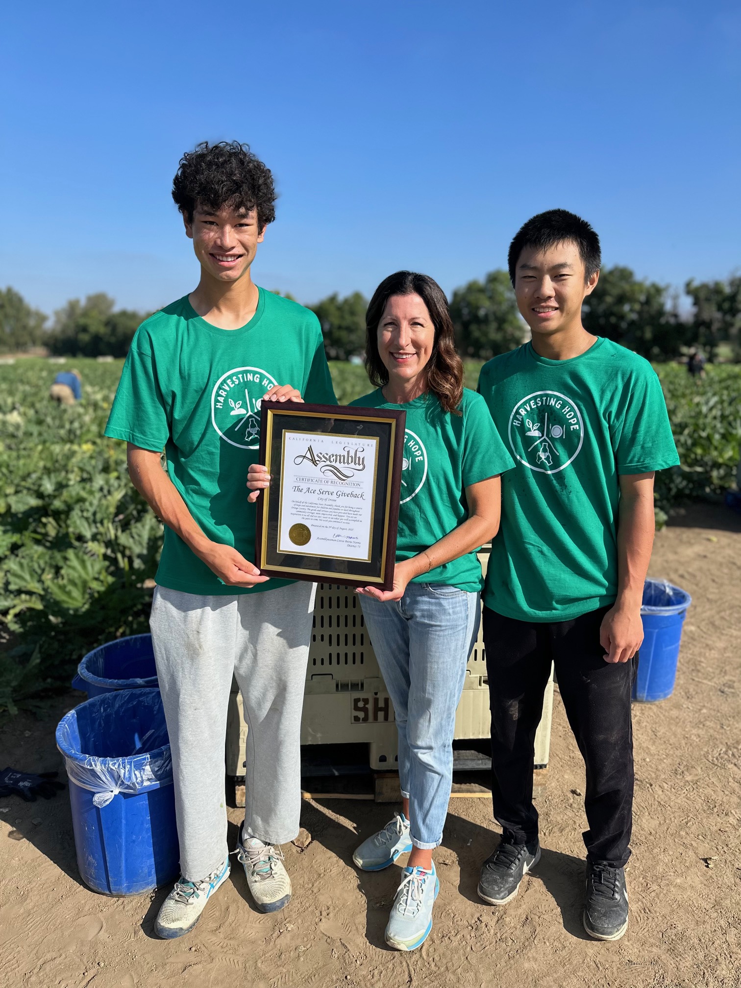 Working the field at Harvest Solutions Farm with California Assemblywoman Cottie Petrie-Norris. Received the Certificate of Recognition for our non-profit work. (9/20/2025)