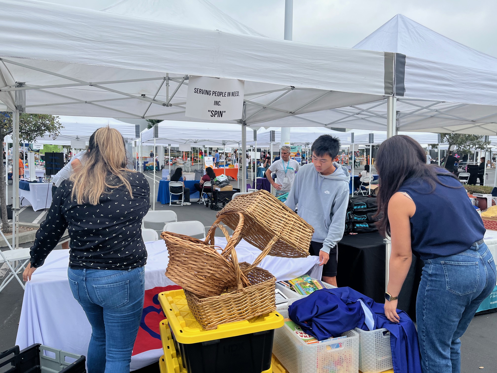 Volunteering and handing out socks at Newport-Mesa Back to School Kickoff Expo in cooperation with Serving People in Need (SPIN) (IKEA Costa Mesa parking lots, 8/2/2025)